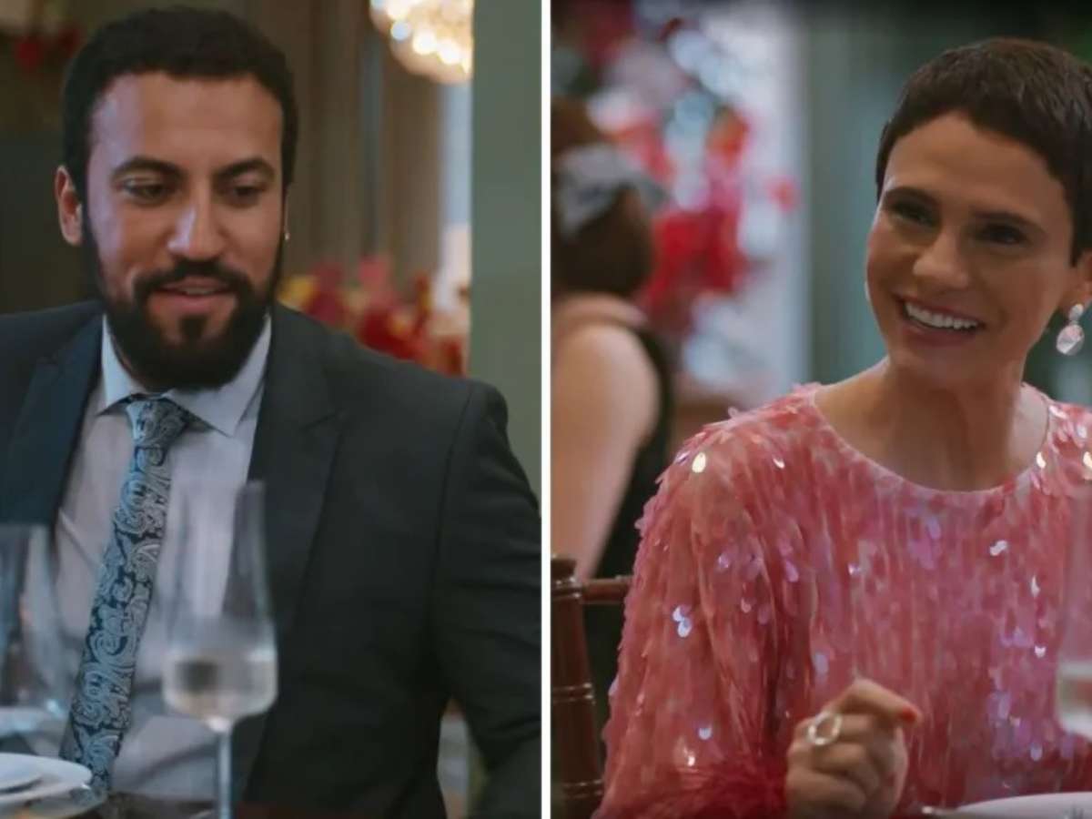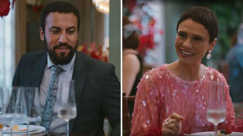 Jantando juntos, os dois deixaram o clima ferver depois do malandro chegar perto e dar uma de sedutor no ouvido da milionária, a deixando bem interessada nele no folhetim da autora Manuela Dias.