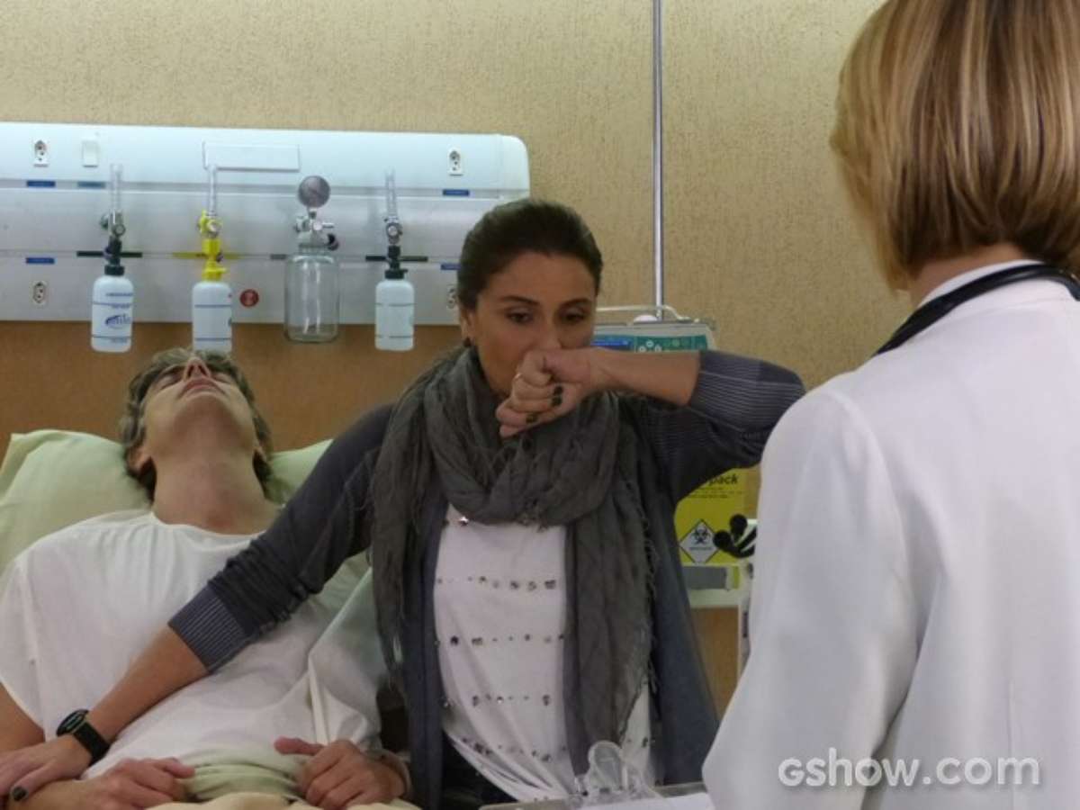A doutora diz que Cadu não tem respondido bem aos medicamentos e terá de recorrer a um transplante de coração. Clara (Giovanna Antonelli), abalada com a situação, fica ao lado do marido e dá seu apoio tentando segurar o choro.