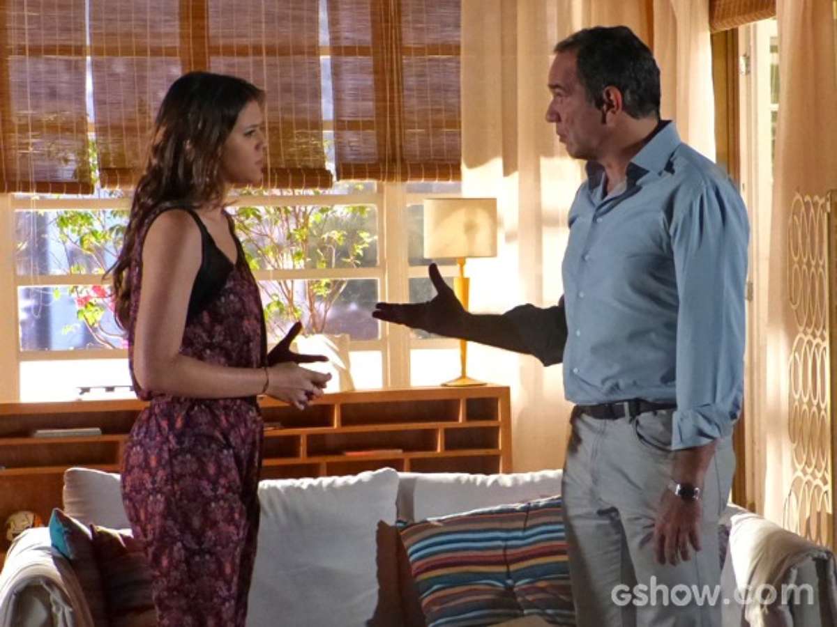 Luiza (Bruna Marquezine) diz a Virgílio (Humberto Martins) que nem sempre a mãe está certa na vidaFoto: TV Globo / Divulgação