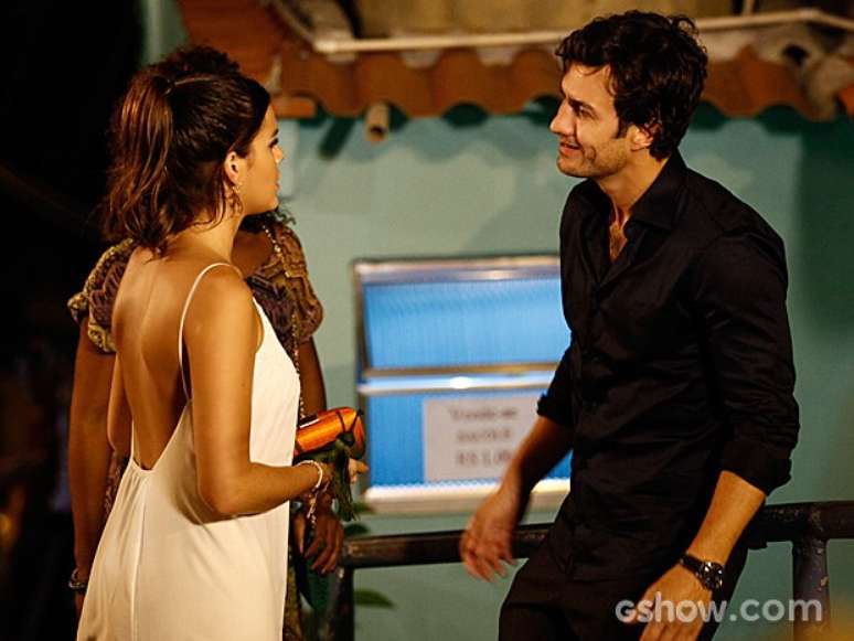 Laerte (Gabriel Braga Nunes) joga charme para Luiza (Bruna Marquezine) enquanto assiste a uma apresentaçãoFoto: TV Globo / Divulgação