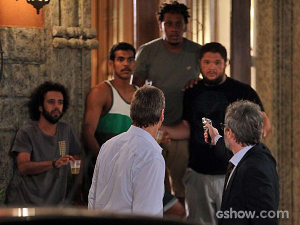 Virgílio (Humberto Martins) não gosta quando Laerte (Gabriel Braga Nunes) fala de Helena (Julia Lemmertz) e Luiza (Bruna Marquezine)Foto: TV Globo / Divulgação