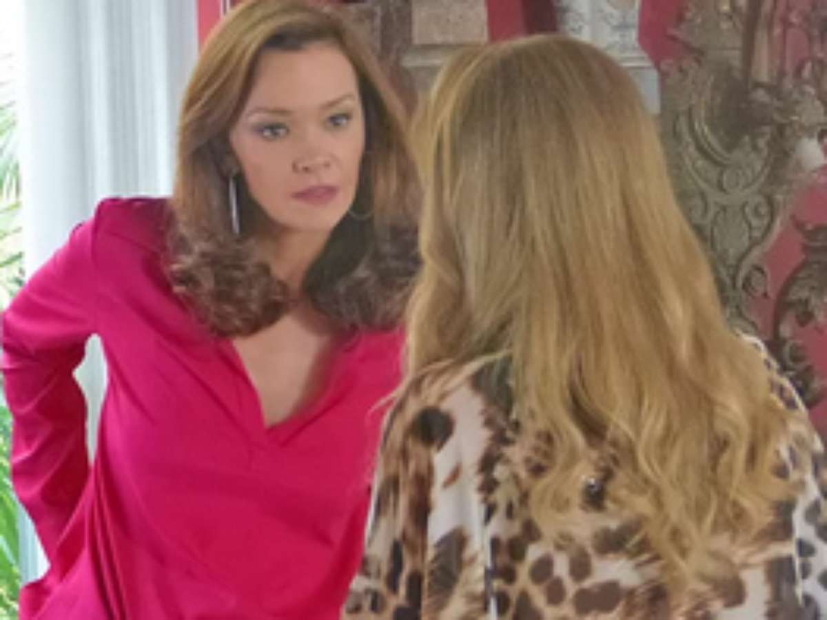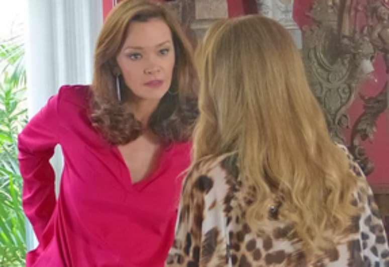 Na novela Em Família, Shirley (Vivianne Pasmanter) visita Helena (Julia Lemmertz) na casa de leilões para provocar. Ela toca no nome de Luiza (Bruna Marquezine), revelando grande intimidade com a filha da rival.
