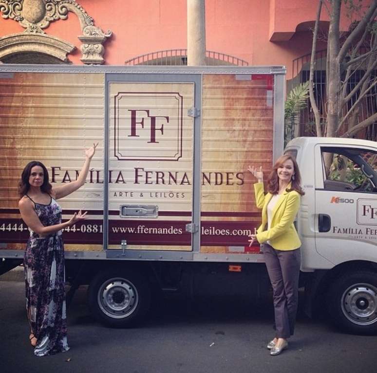 Durante um intervalo, a atriz, que vive Helena na trama, e sua colega de elenco, responsável por dar vida à Juliana, posaram em frente a um caminhão.