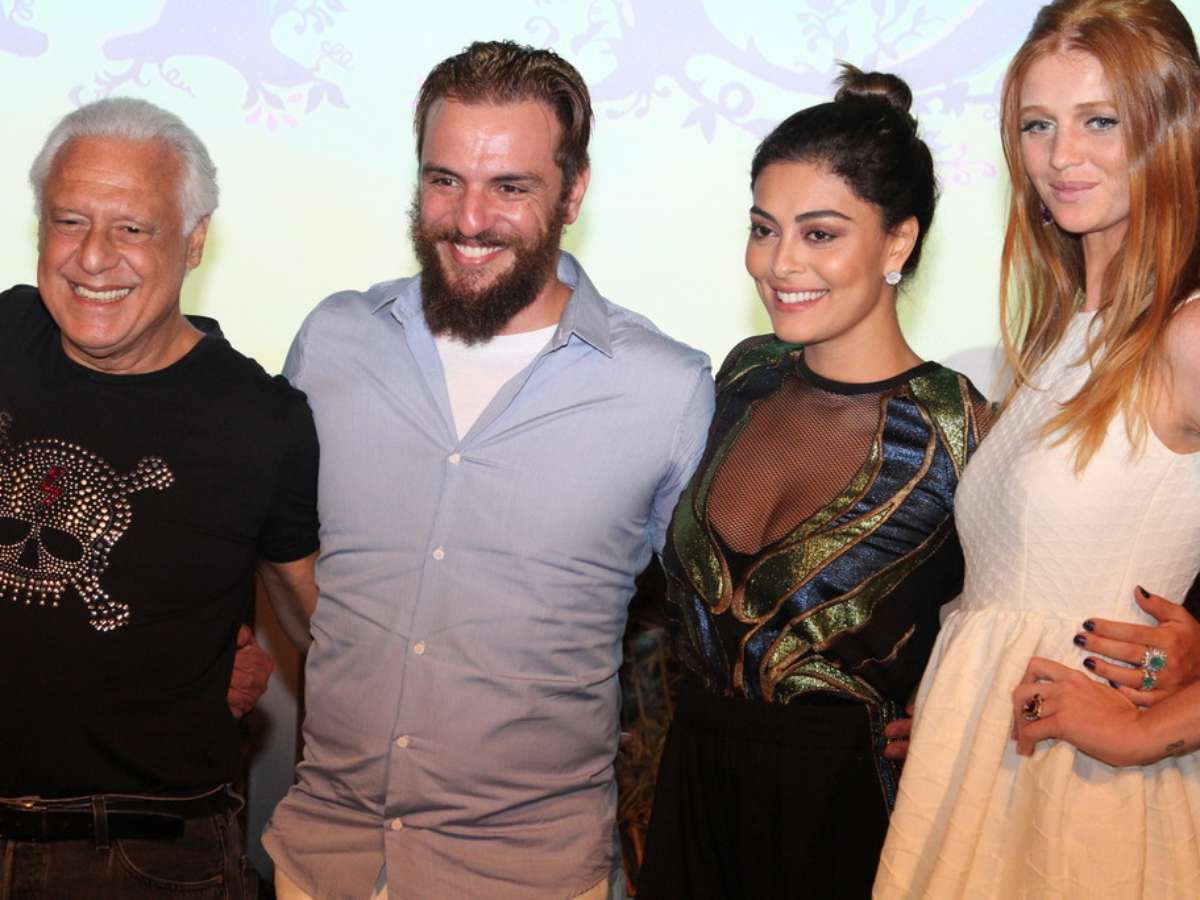 O elenco da nova novela das 18h da Rede Globo, Meu Pedacinho de Chão, se reuniu na noite de quinta-feira (28) para o lançamento do folhetim. Durante a festa eles se divertiram fazendo fotos e assistindo ao clipe com cenas da novela. Na foto, Juliana Paes