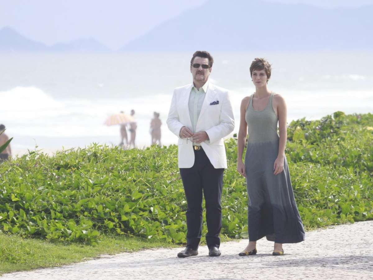 Após ter sido abandonado por Bianca (Cleo Pires), Stenio (Alexandre Nero) reencontrou a ex-noiva ao voltar para a Turquia. Ela o cumprimenta como se nada tivesse acontecido e os dois discutemFoto: TV Globo / Divulgação