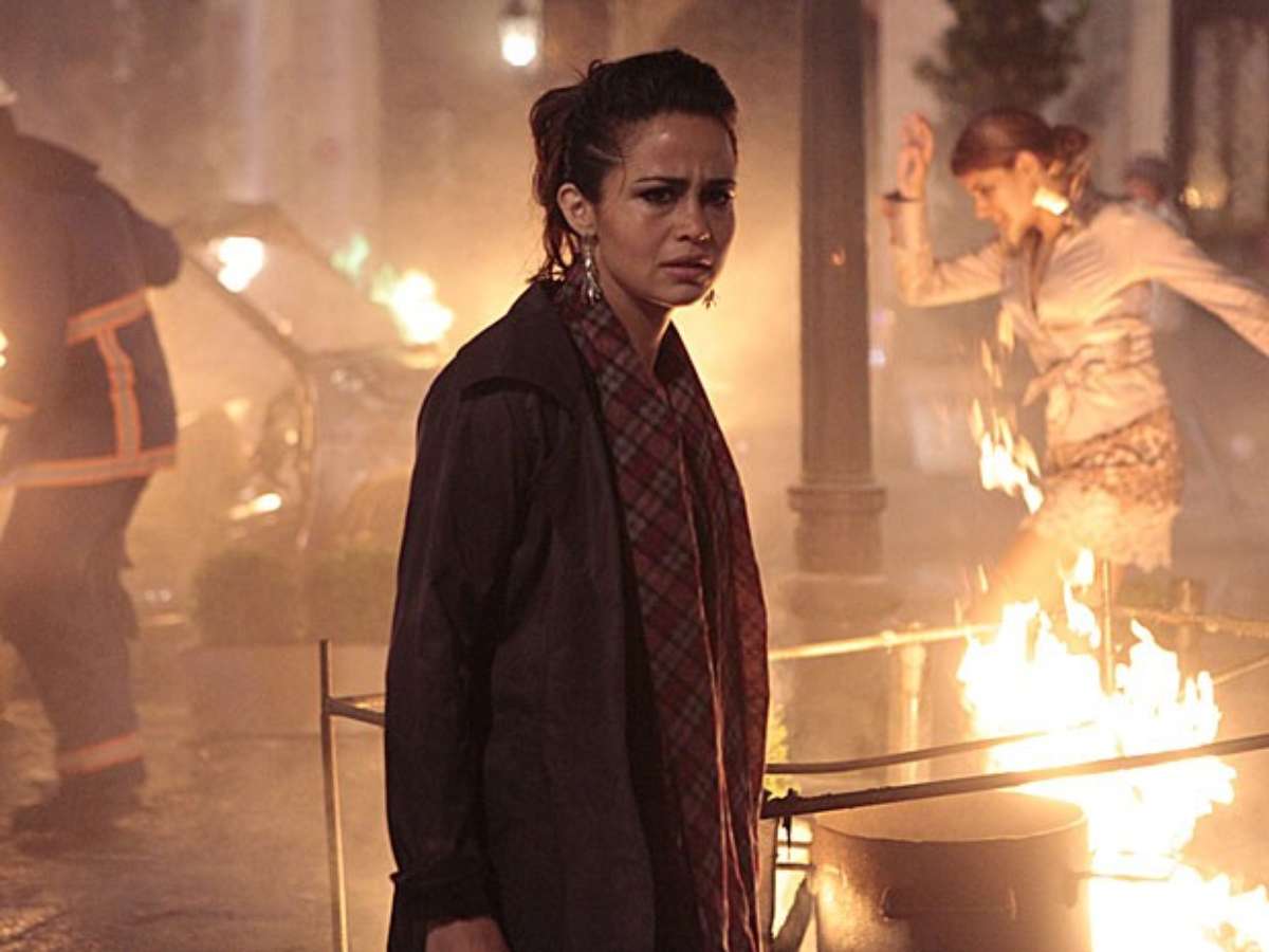 Após colocarem foto no alojamento da boate, as traficadas são resgatadas pelos bombeiros, porém Russo aparece na hora e impede que ela fujamFoto: TV Globo / Divulgação