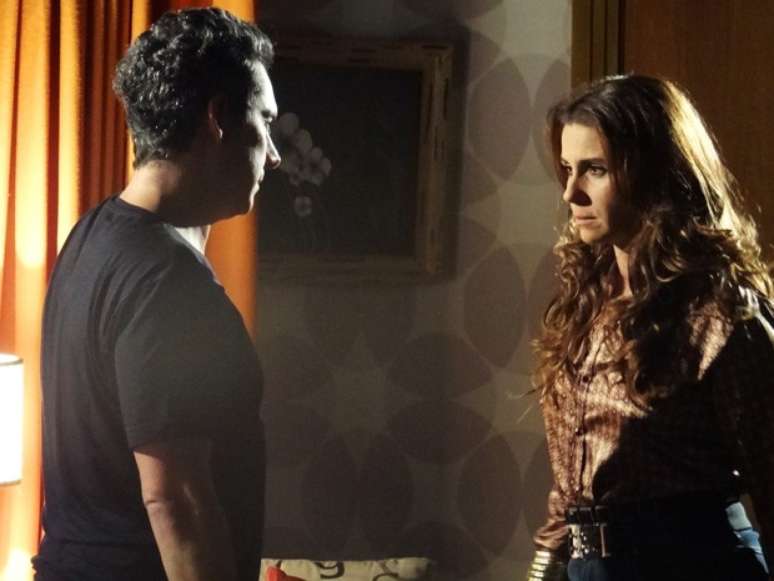 Lívia (Claudia Raia) inventa para Mustafa (Antoniio Calloni) que Berna (Zezé Polessa) pegou dinheiro dele para ajudar uma entidadeFoto: TV Globo / Divulgação