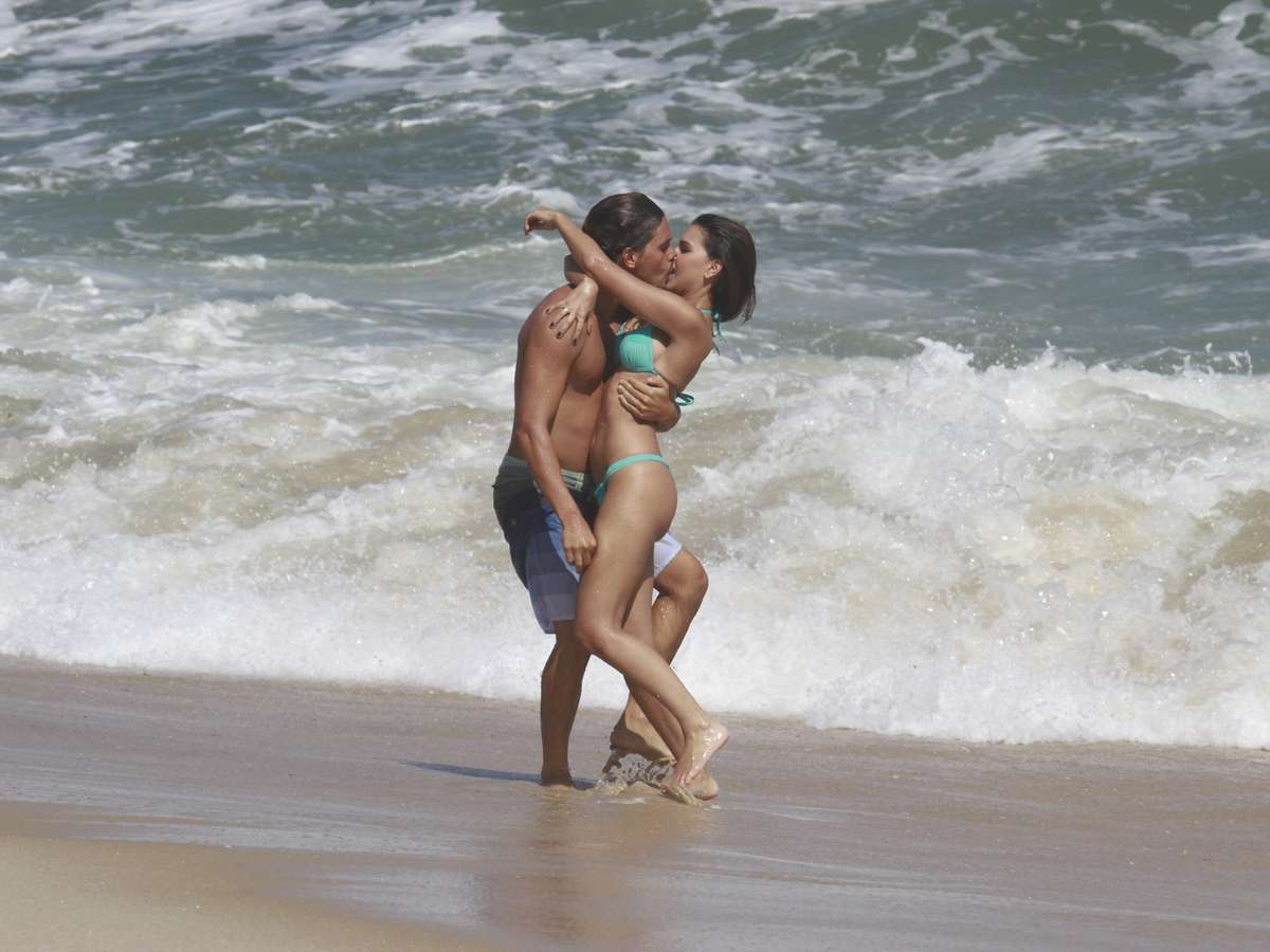 De biquíni, a atriz Mariana Rios gravou, ao lado do ator Ivan Mendes, cenas da novela 'Salve Jorge', nesta sexta-feira (1), na praia da Macumba, no Rio de Janeiro. Simpática, ela também posou para fotos ao lado de fãs