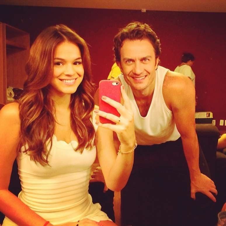 "Gravando com ele @gabrielbraganunesoficial figura! #myfavorite", escreveu na legenda. A atriz apagou a foto um pouco depois e substituiu por uma imagem dos dois em preto e branco, dizendo: "essa tá melhor".