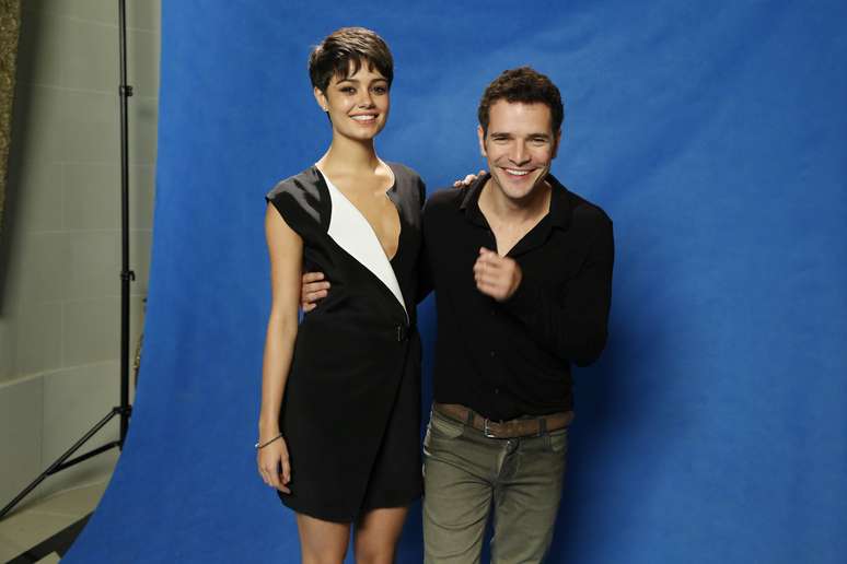 O elenco da novela O Rebu, que estreia no próximo dia 14 de julho, participou de uma coletiva de imprensa para apresentar o remake, no Rio de Janeiro. Na foto, Laura Neiva e Jesuíta Barbosa