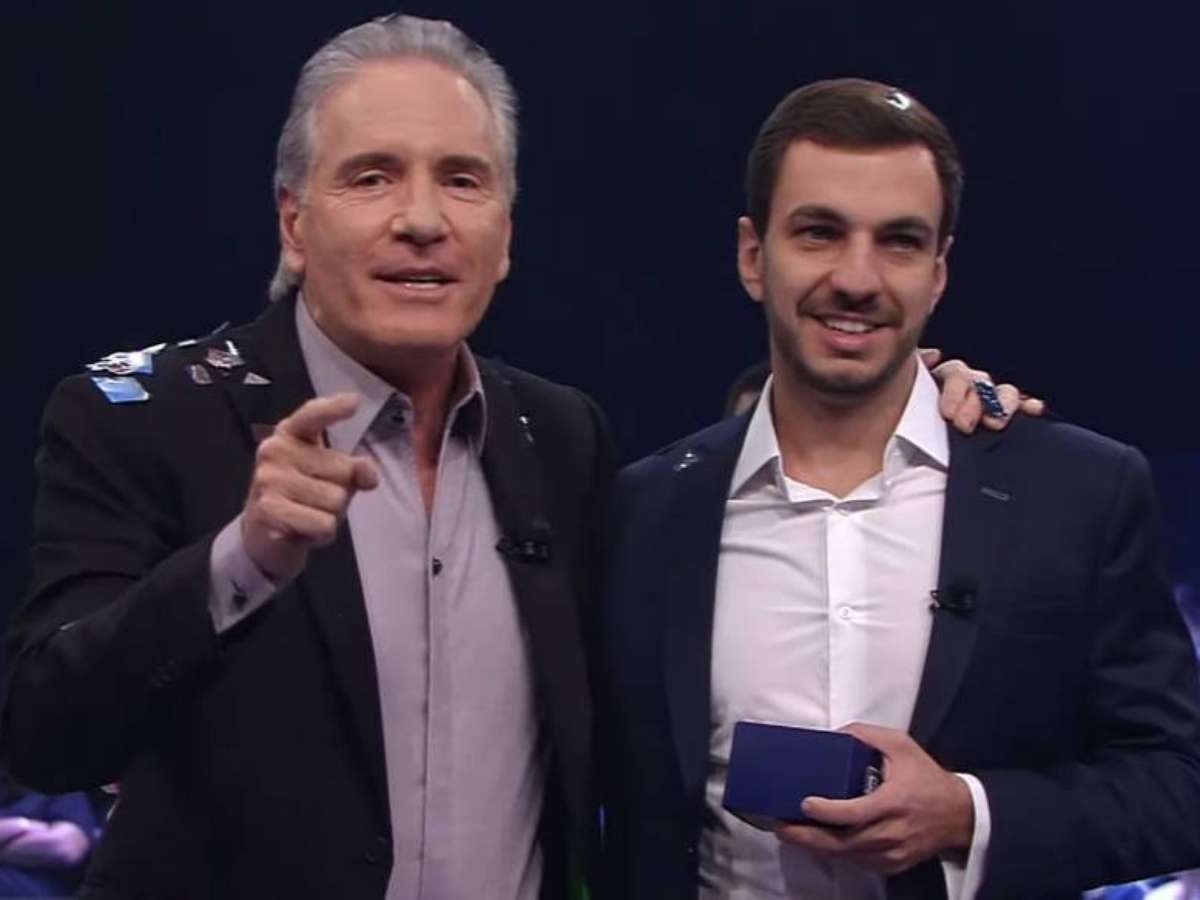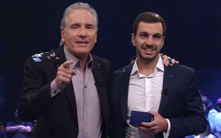 Roberto Justus e Gabriel Gasparini, o Gaspa, durante a final de 'O Aprendiz', na Band.