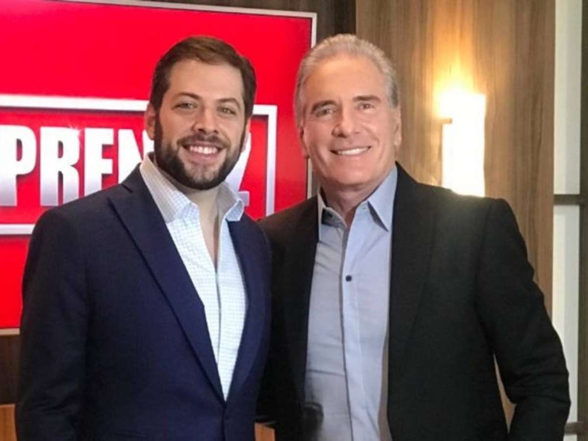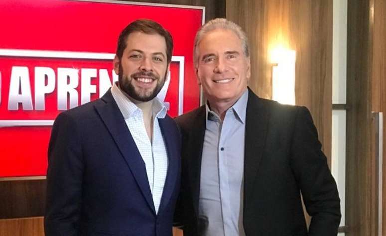 Ricardo Justus como conselheiro de 'O Aprendiz', ao lado de seu pai, Roberto Justus.