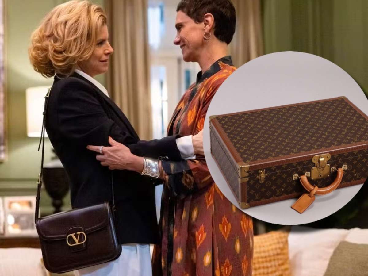 Outro detalhe chama atenção na chegada de Odete Roitman: as três malas-baus da Louis Vuitton que ela enviou direto de Paris. No site brasileiro da maison francesa, um modelo semelhante ao usado pela personagem custa a partir de R$ 84 mil.