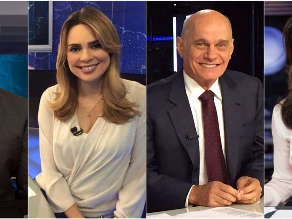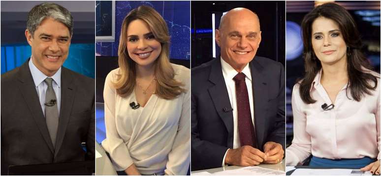 William Bonner, do 'JN', Rachel Sheherazade, do 'SBT Brasil', Ricardo Boechat, do 'Jornal da Band', e Adriana Araújo, do 'JR': em alta no Ibope