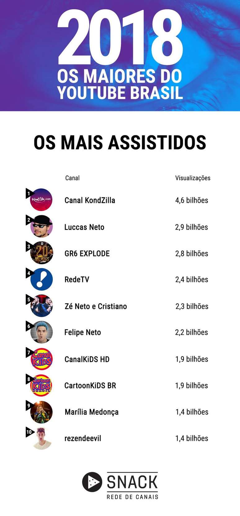 Uma pesquisa realizada pela Rede Snack mostra quais foram os canais de YouTube brasileiros mais assistidos, mais comentados e mais curtidos em 2018.