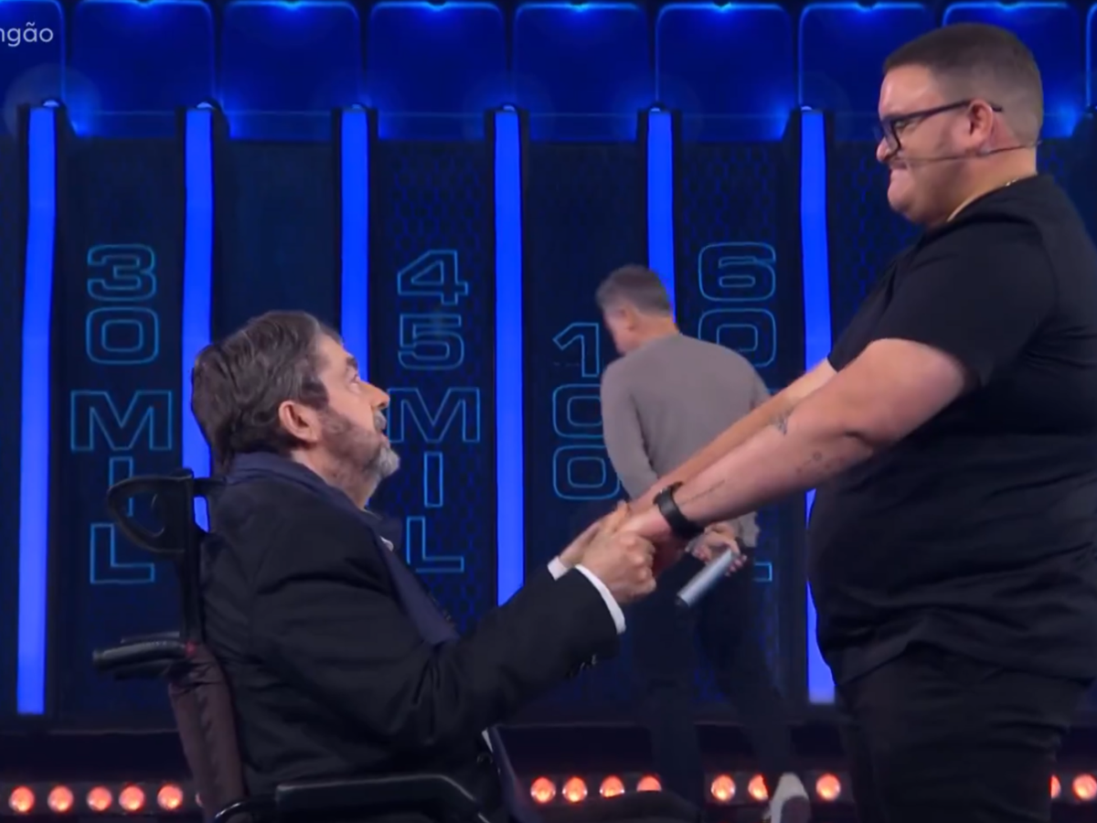 O estudante José Figueiredo e o professor aposentado Marco foram os participantes do The Wall, no Domingão com Huck, neste domingo, 5. Eles entraram no quadro em busca de R$ 150 mil para construir o protótipo de um dispositivo para mapear o metabolismo humano.