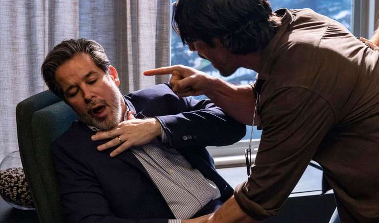 A tensão começou no capítulo desta terça, 3, quando Paulinho invadiu o escritório do empresário e o enquadrou após ouvir provocações sobre seu pai, morto enquanto investigava um esquema de medicamentos falsificados comandado pelo próprio vilão.
