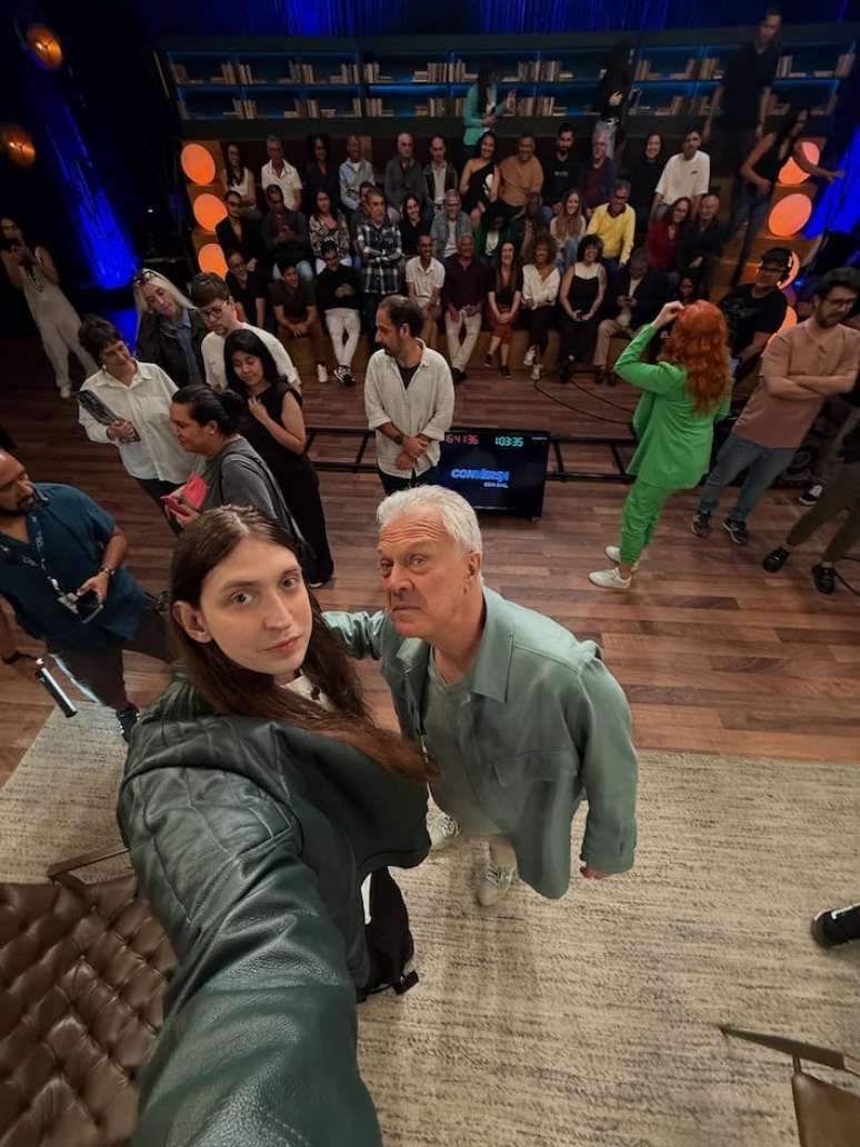 Pedro Bial compartilhou uma foto ao lado de Felca e brincou com a altura do influenciador, que será entrevistado por ele no Conversa com Bial desta terça-feira, 26. "O convidado de hoje é mais alto do que eu e ainda foi de salto", escreveu o jornalista, que tem 1,92 m de altura, contra os 1,97 m de Felca.