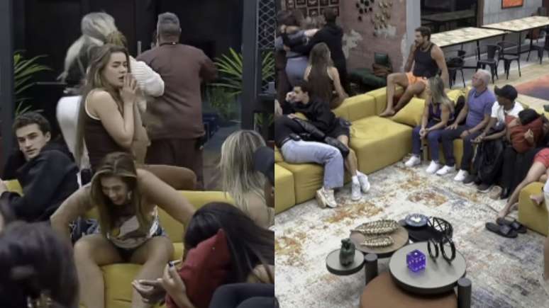 Em seguida, Rafa Brites e Felipe Andreoli, casal que apresenta o reality. anunciaram para o público a eliminação de Gi e Eros, liberam a volta de de Carol e Radamés ao confinamento.