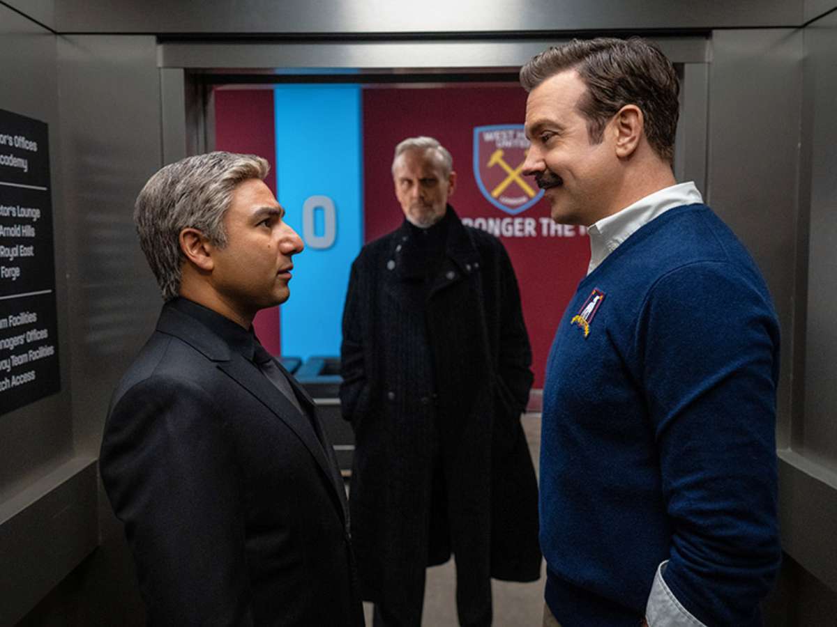 A Apple TV+ divulgou a primeira foto da 3ª temporada de "Ted Lasso", que coloca frente a frente os ex-amigos Nathan (Nick Mohammed) e Ted (Jason Sudeikes). Os dois estarão no comando de times rivais nos novos episódios.