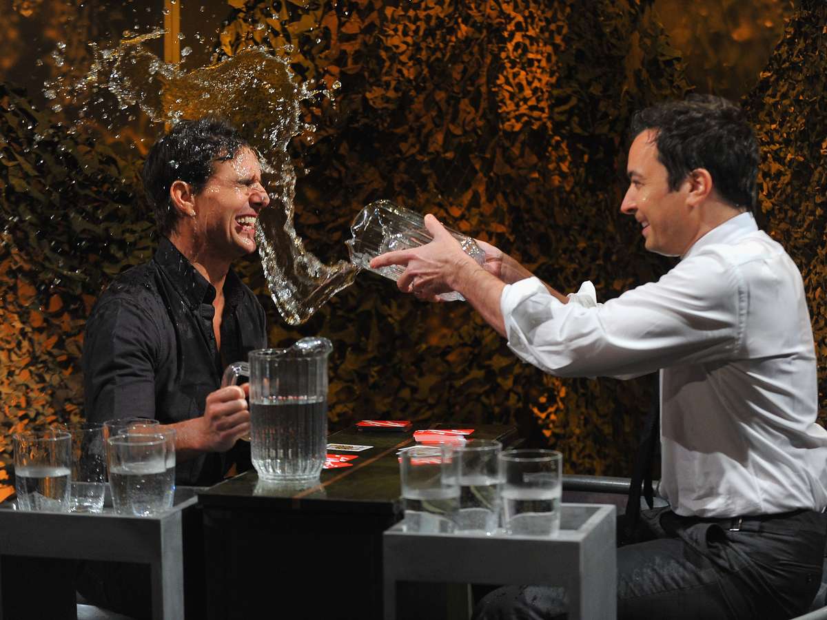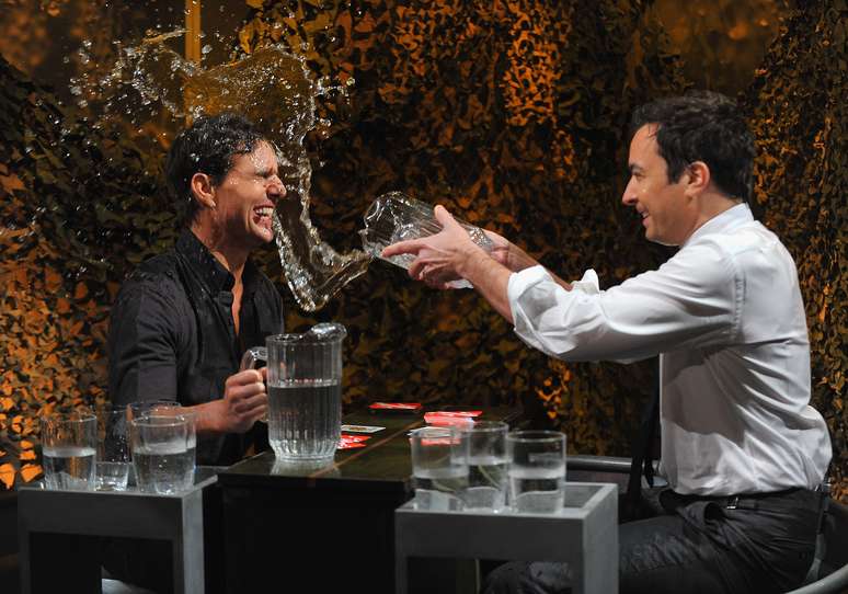 O apresentador Jimmy Fallon jogou um copo d'água na cara de Tom Cruise durante edição do Late Night With Jimmy Fallon. Tudo não passava de uma brincadeira com cartas em que o vencedor tem direito de despejar o líquido no oponente. As informações são do E! Online.