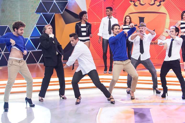 Marcos Mion lançou um desafio diferente no programa Legendários, da TV Record, que vai ao ar neste sábado (19). Ao lado dos convidados Marcos Oliver, Raul Gazolla, Robson Bailarino e Yudi, o apresentador dançou de salto alto no palco da atração - também participou o Grupo Stiletto, que tem bailarinos especializados nesse tipo de dança