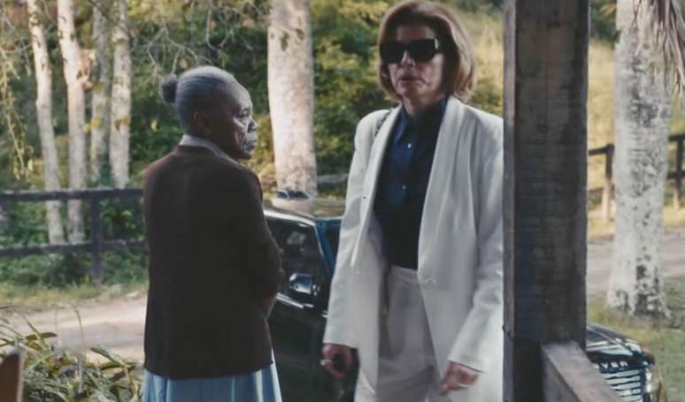 Na sequÊncia, a vilã-mor se dirigr ao seu carro, mas atenta à janela escura da casa de campo. Afinal, o que Odete Roitman esconde que a fez 'baixar a cabela' para outra mulher?