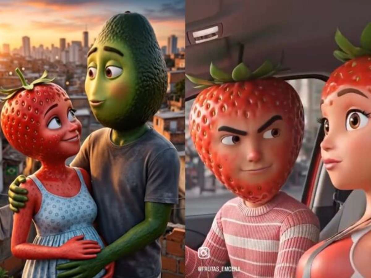 Perfis nas redes sociais têm usado inteligência artificial para criar folhetins estrelados por frutas antropomorfizadas