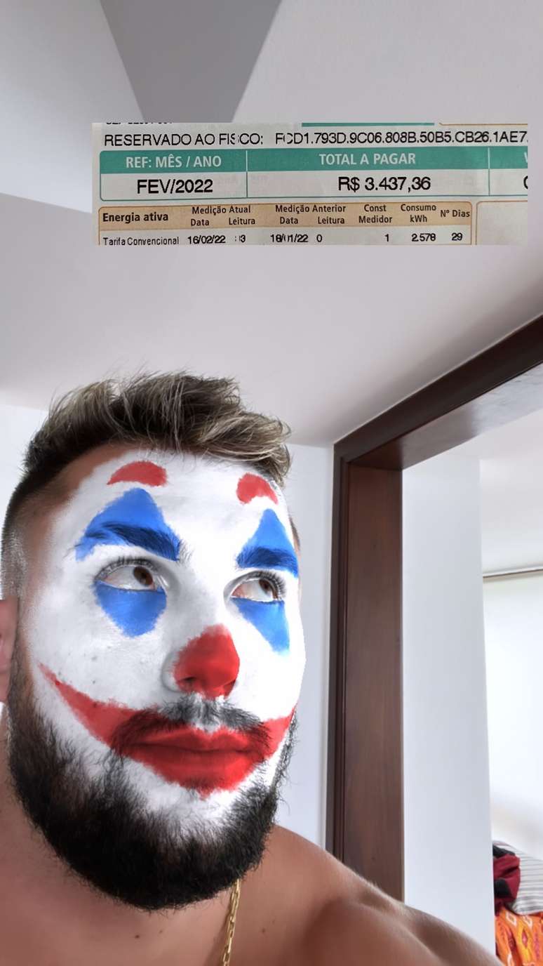 "Lembra quando eu falei para vocês que a conta de energia da minha casa tava muito cara? Em novembro deu R$ 800, dezembro deu R$ 940, mês passado deu R$ 1.000 aí eu falei: 'Não, R$ 1.000 é o máximo que eles têm coragem de roubar de mim'. Aí eu chego hoje de viagem e vou botar no próximo story o valor, e novamente eu não estava em casa e vocês sabem", desabafou ele.