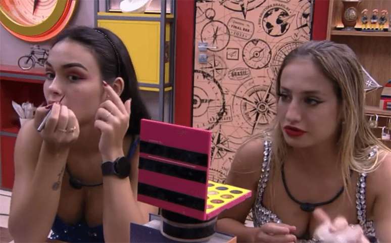 Larissa Santos aproveitou ter ficado sozinha com Bruna Griphao, enquanto se maquiavam para a festa desta sexta no "BBB 23", para avisá-la que a fala sobre "urubu de luto", dirigida a Fred Nicácio, repercutiu fora do reality.