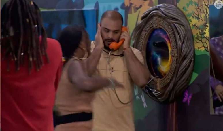 O brother ficou bastante estremecido, chegando a tremer e fazer caras e bocas. Enquanto ouvia o recado, os outros participantes observavam boquiabertos e curiosos. "Vem cá todo mundo!", pediu ao desligar o telefonema. "...