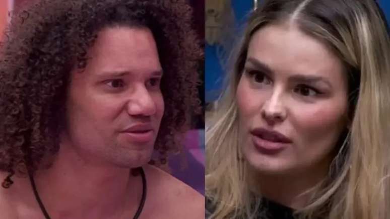 Sem papas na língua e direto, o merendeiro pediu para que a modelo não o abrace caso ele seja eliminado do reality da Globo. "Yasmin, se eu sair não me abraça não, tá?", falou. Yasmin concordou: "Claro!".