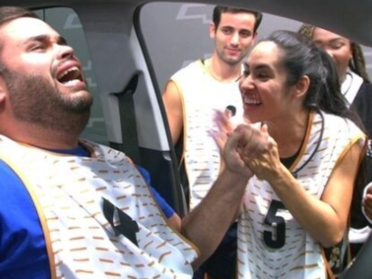 Michel e Giovanna, que foram dupla na prova, fizeram o melhor tempo e avançaram para a disputa final. Na outra fase, o professor achou a chave do carro primeiro e ganhou.