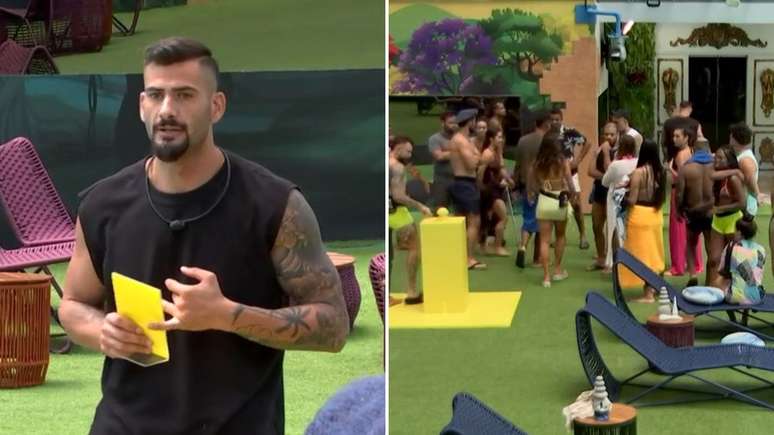 Após Nizam apertar um botão amarelo que surgiu na área externa da casa, ele precisou escolher 3 participantes para uma dinâmica