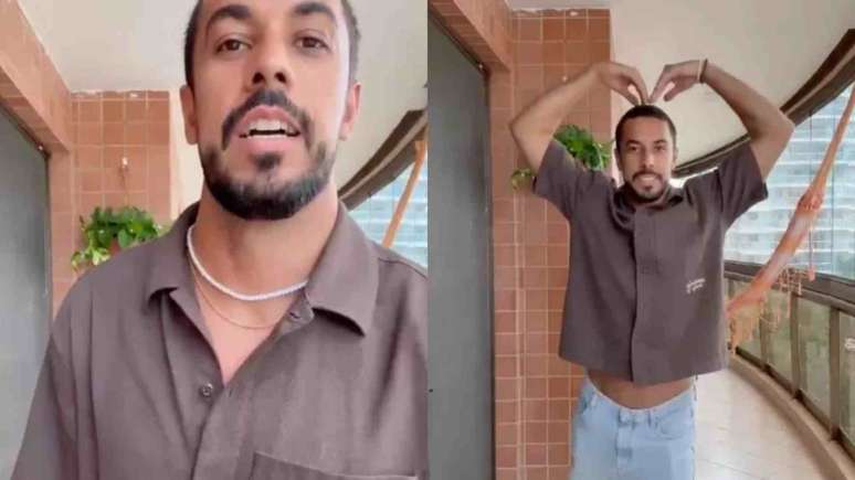 No vídeo, o brother levanta os braços, dá saltos e até um giro. A promessa paga seria "recompensa" para a quantidade de votos do fã-clube de Renata, que enfrentava o Paredão com a sister.