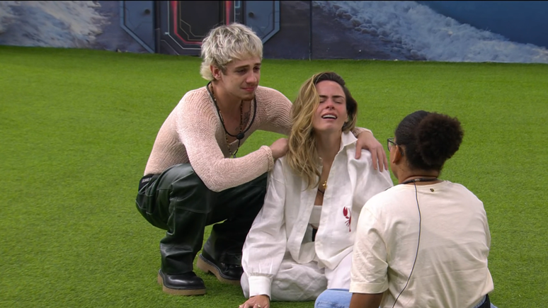 "Tia Milena, meu pai morreu", disse Ana Paula. Milena ficou chocada com a informação, e Juliano consolou a jornalista.