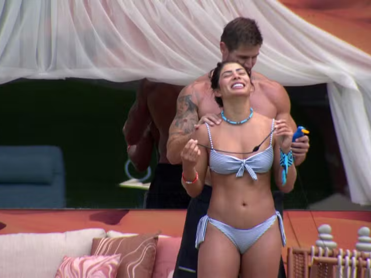 Com bom humor, Jonas avisou: "Ainda vai ganhar uma massagem nas costas". Marciele respondeu no mesmo tom: "Coisa boa, hein?! Limpa a piscina, passa protetor, faz massagem". A interação chamou a atenção de Maxiane, que atravessava o jardim e comentou ao observar a cena: "Eita, como faz massagem". O momento descontraído reforçou a proximidade entre os participantes e movimentou as conversas dentro e fora da casa.