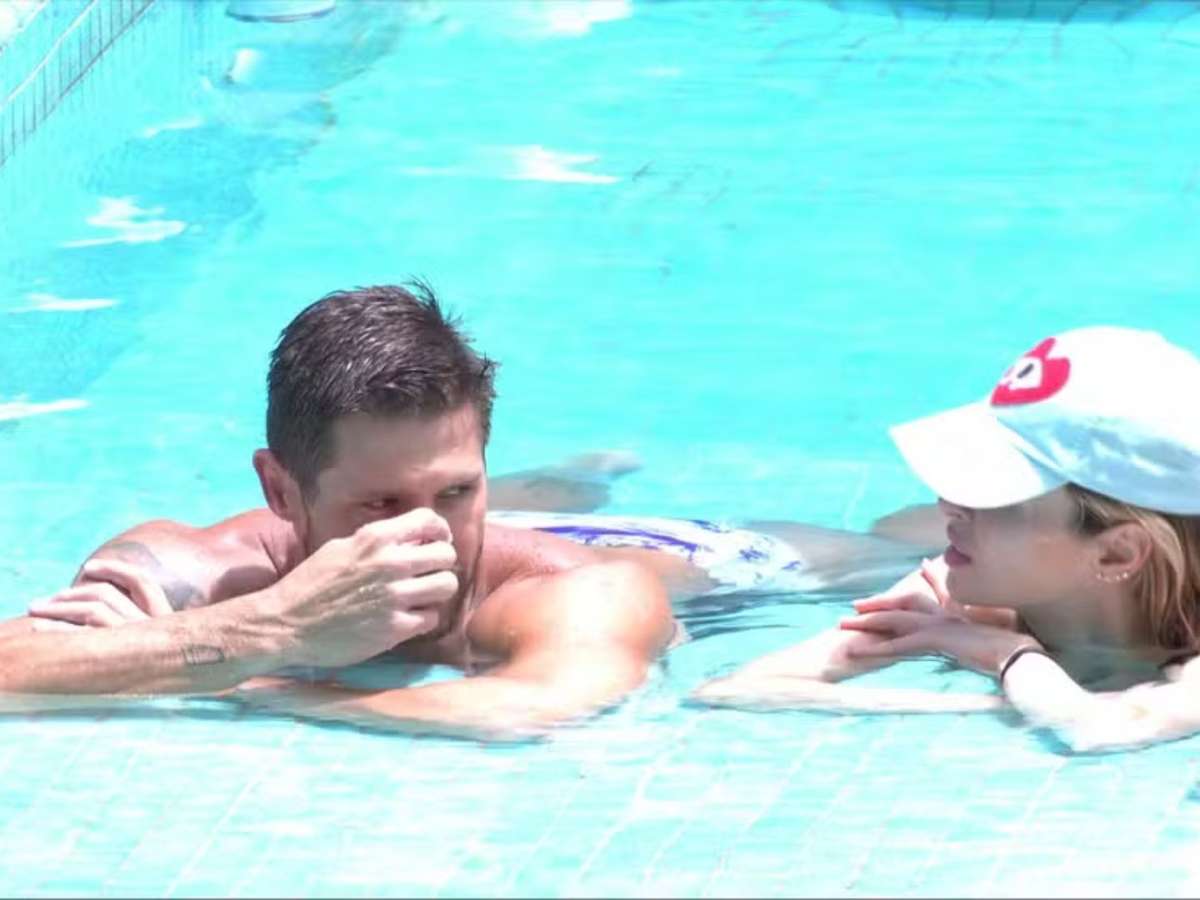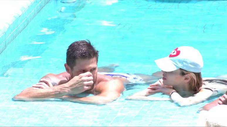 Em papo sobre autoestima na piscina, modelo revelou ter operado nariz e orelhas; Ana Paula aproveitou o momento para brincar sobre genética de supostos futuros filhos