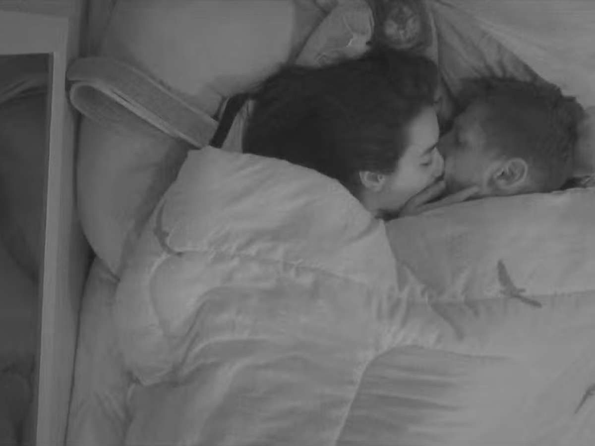 A resposta veio em tom descontraído: "Um segredo imperdível. Essa é a melhor cama do quarto", disse Jordana, arrancando risadas. O que começou como brincadeira rapidamente evoluiu para troca de beijos e carícias sob o edredom, que se movimentou e chamou atenção. "Está quente o quarto", comentou a sister, enquanto permanecia ao lado do empresário por mais tempo.