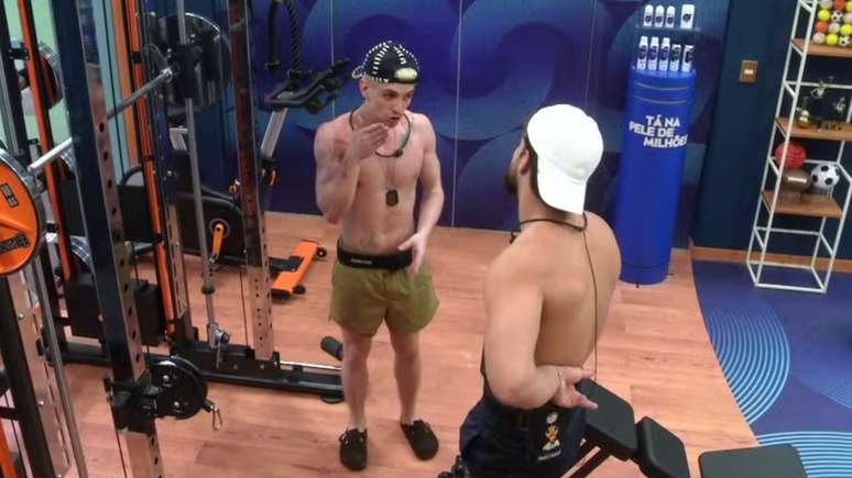 Incomodado com a perda constante de estalecas, o influenciador criticou o comportamento de Pedro em conversa na academia