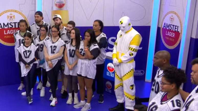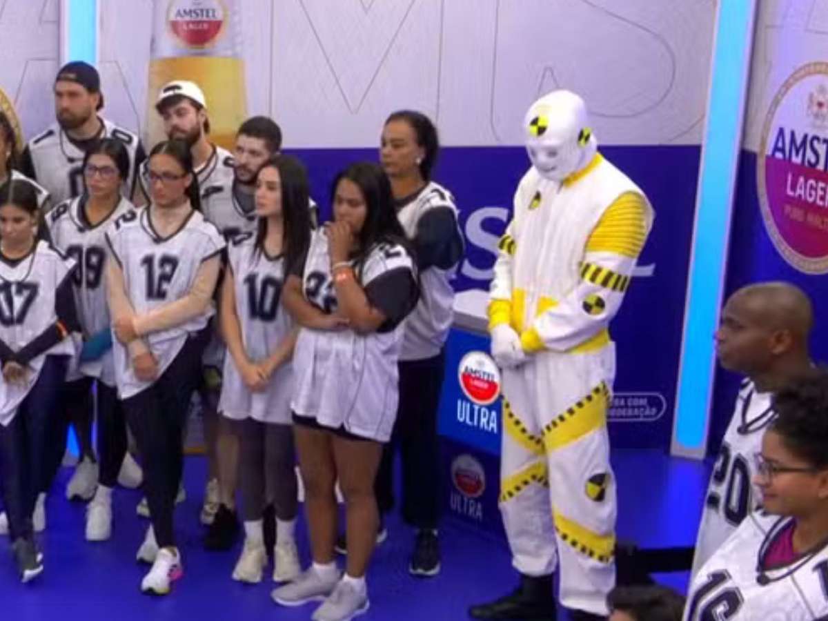 A dinâmica iniciou de forma individual e teve como foco o equilíbrio de uma gangorra equipada com duas bandejas. Antes do início da prova, Tadeu Schmidt apresentou as regras e explicou que o desafio envolvia caixas de bebidas com pesos distintos, fator determinante para o sucesso dos competidores.