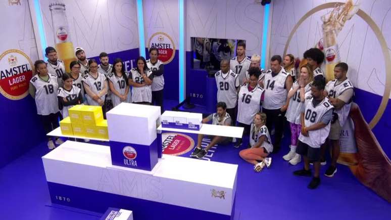 "A Prova é individual. O objetivo é equilibrar as duas bandejas dessa gangorra que vocês tão vendo. A gangorra começa com três caixas de Amstel Ultra de um lado e seis caixas de outras bebidas no outro. Vocês não podem tirar essas caixas, elas estão presas.