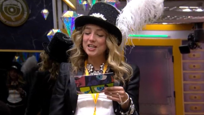 "Samira, hoje é a sua festa! Todos estão convidados, menos um. Escolha uma pessoa para enfrentar o desafio do Barrado no Baile. Se vencer, vai ganhar o acesso à Festa. Diga agora quem deve ir. Justifique sua escolha", leu para os brothers na sala.