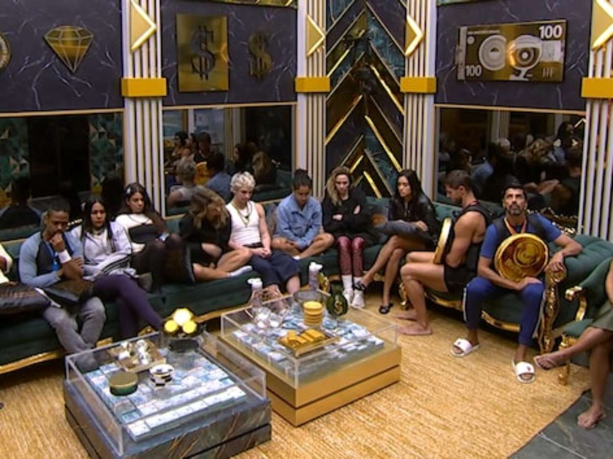 Participantes na sala do BBB 26 antes da dinâmica do 'Triângulo do Risco' deste sábado, 21