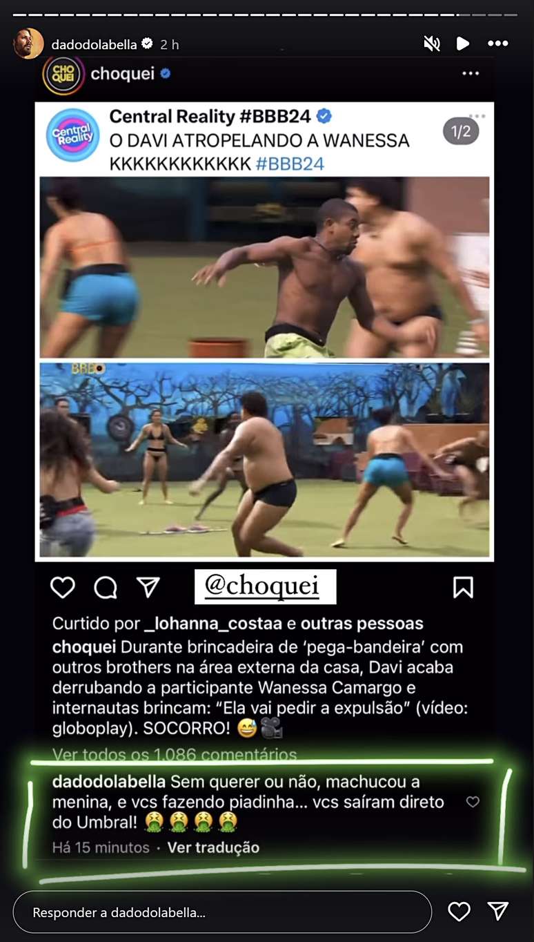 BBB | Dado Dolabella vira piada ao acusar Davi de machucar Wanessa