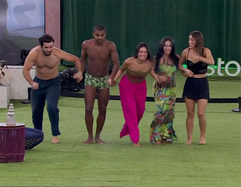 "Duvido ir na sala e voltar", desafiou Matteus. "Eu vou, nem que seja correndo", respondeu a dançarina. "Tem que dar um passeio na casa", sugeriu Davi. "Tem que ser um desfile longo", falou o gaúcho de Alegrete.