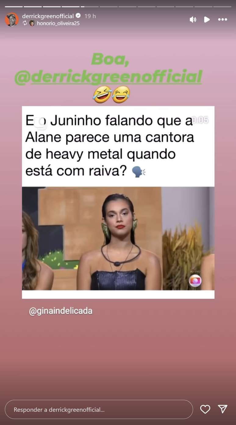 Além disso, o comentário gerou reação do próprio cantor do Sepultura, o americano Derrick Green. Em suas redes sociais, ele repostou alguns comentários do momento e escreveu "Boa", acompanhado por emojis de risos lacrimosos.