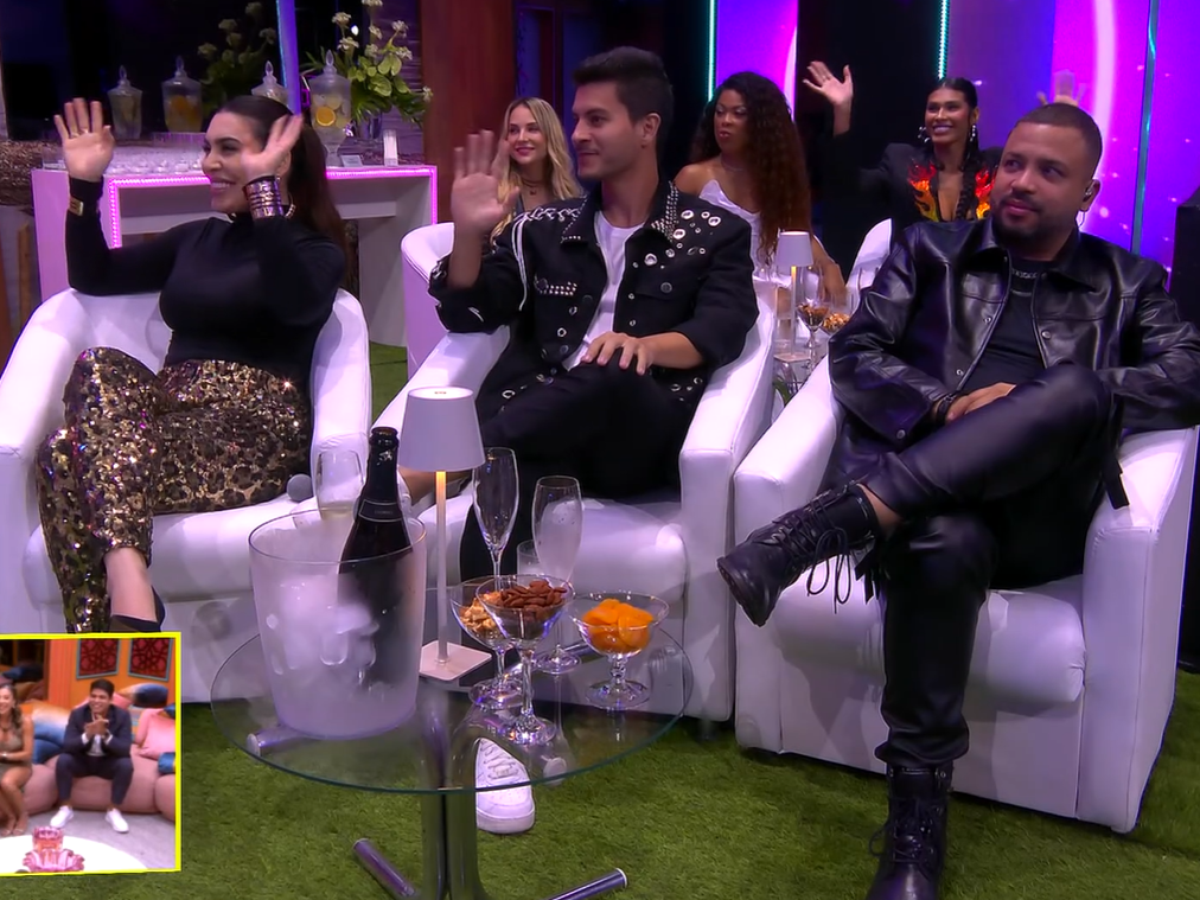 O flagra do lado sério do cantor aconteceu logo na apresentação dos presentes na final do reality show. Sentado ao lado de Arthur Aguiar e Naiara Azevedo, o dono do sucesso Muleque de Vila não acompanhou a empolgação da dupla.