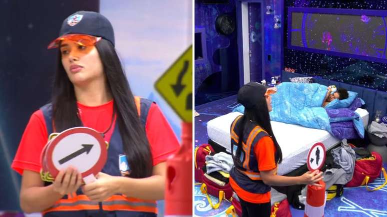 Após concluir a tarefa, ela voltou ao quarto rival mais uma vez para recolher as placas, e, claro, acendeu a luz novamente. "Hora do Monstro tirar a plaquinha. Boa noite!", anunciou ao entrar no cômodo. De volta à despensa para devolver o material, encerrou a missão com a satisfação de quem cumpriu exatamente o que havia planejado: "Agora sim, serviço feito."