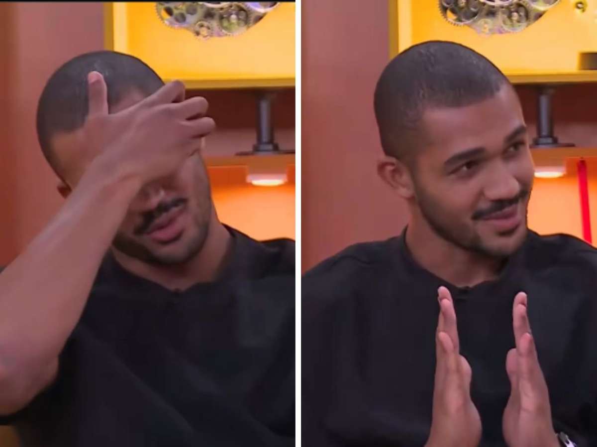 “Foi acidente ou estratégia?”, perguntou Ceci Ribeiro, enquanto Gil do Vigor ria. “Foi totalmente acidente. Eu sou, eu sou... o banheiro era desse tamanho aqui, era minúsculo”, disse ele, fazendo um gesto para demonstrar o quanto o cômodo era pequeno. “Eu não entendi o que estava acontecendo, nem vi. Quando observei o Ricardo com aquele negócio [sujeira], eu falei: ‘Pô, só pode ser eu’”.